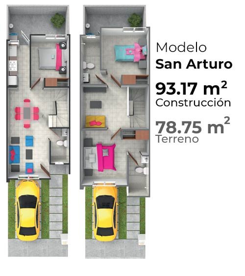 •3 Recámaras •3 Baños •Construcción: 93.17 m2 / Terreno: 78.75 m2