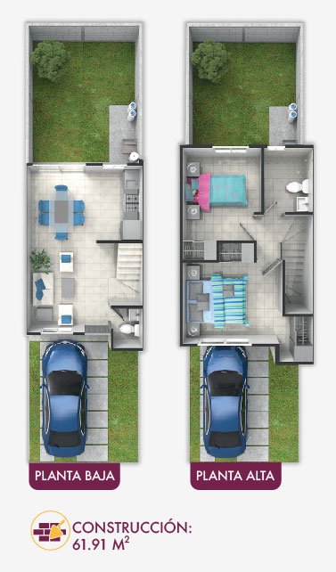 •3 Recámaras •2.5 Baños •Construcción: 76.31 m2 / Terreno: 78.75 m2